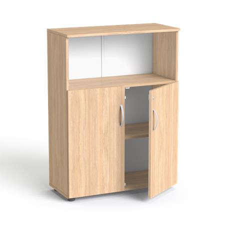 3 rendező magas, kombinált szekrény, ajtós és nyitott polcos részekkel