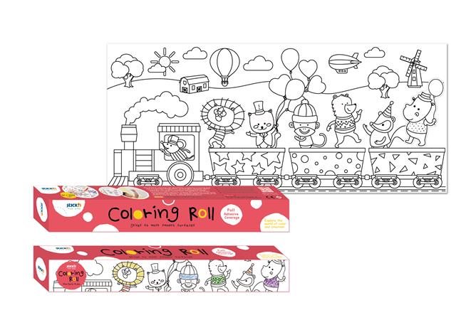 Színező tekercs, öntapadó, 31x355 cm, STICK N, parti vonat
