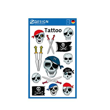 KezdőlapIrodaszerekHobby és kreatív termékekMatricákMatrica, tetoválás, 1 ív, 76x120 mm, AVERY ZWECKFORM, "Z-Design No.56632", kalóz halálfejek kardokkal
