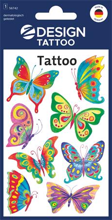 Matrica, tetoválás, 1 ív, 76x120 mm, AVERY ZWECKFORM, "Z-Design No.56742", pillangók